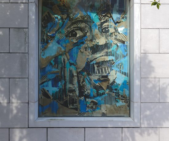 which involves activating windows at the Jepson Center that face Barnard Street. Farris has created five large-scale assemblages that layer and juxtapose images of present-day Savannah inhabitants with references to Gullah traditions and African American history and narrative. The works are made from various recycled and found materials including boxes and paper bags. Combining these reworked objects with his unique printmaking process, Farris blurs the boundaries between abstraction and representation, sculpture and printmaking, and contemporary and traditional. Farris writes of his own artistic practice, “I like to see artwork that will take one medium and use it to do something else. Artwork that is bold, expressive, and completely different.” In addition to being inspired by the materials around him to create dynamic and colorful pieces, Farris also looks to his own life as he creates works that are full of intimate personal experiences and examinations of subjects that are compelling to him, including issues surrounding diaspora, culture, memory, and perception.