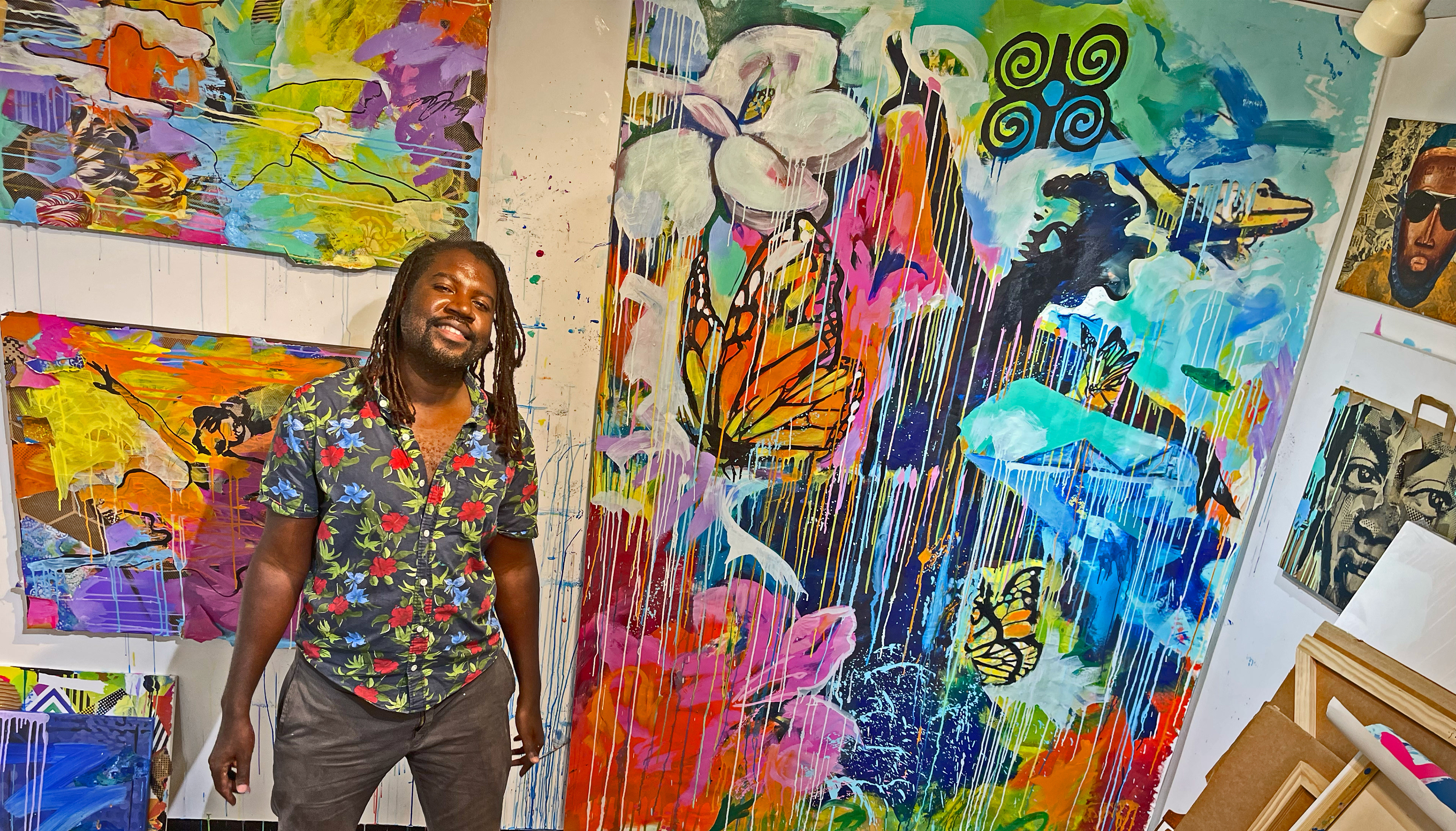 In the studio, I prioritize staying creative and pushing boundaries. When painting, I focus on layering colors, textures, and my signature drips, which symbolize time, renewal, and connection. These elements often carry cultural, historical, or environmental narratives, reflecting my commitment to storytelling through visual art.